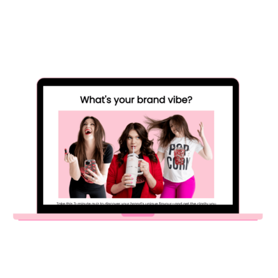 Emily Lauren Dick wearing a pink sweater with red happy faces all over it. She is leaning on her hand. The title "This brand change wasn't part of the plan" is written in front of her.